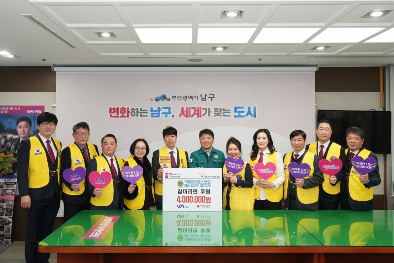 제7지역(지역부총재 황성철L)에서는 9개 클럽 합동 봉사사업으로 1월 29일(목) 부산 남구청을 방문하여 지역 공공형 라면카페 <같이라면> 오픈에 필요한 후원금을 전달하고 왔습니다.